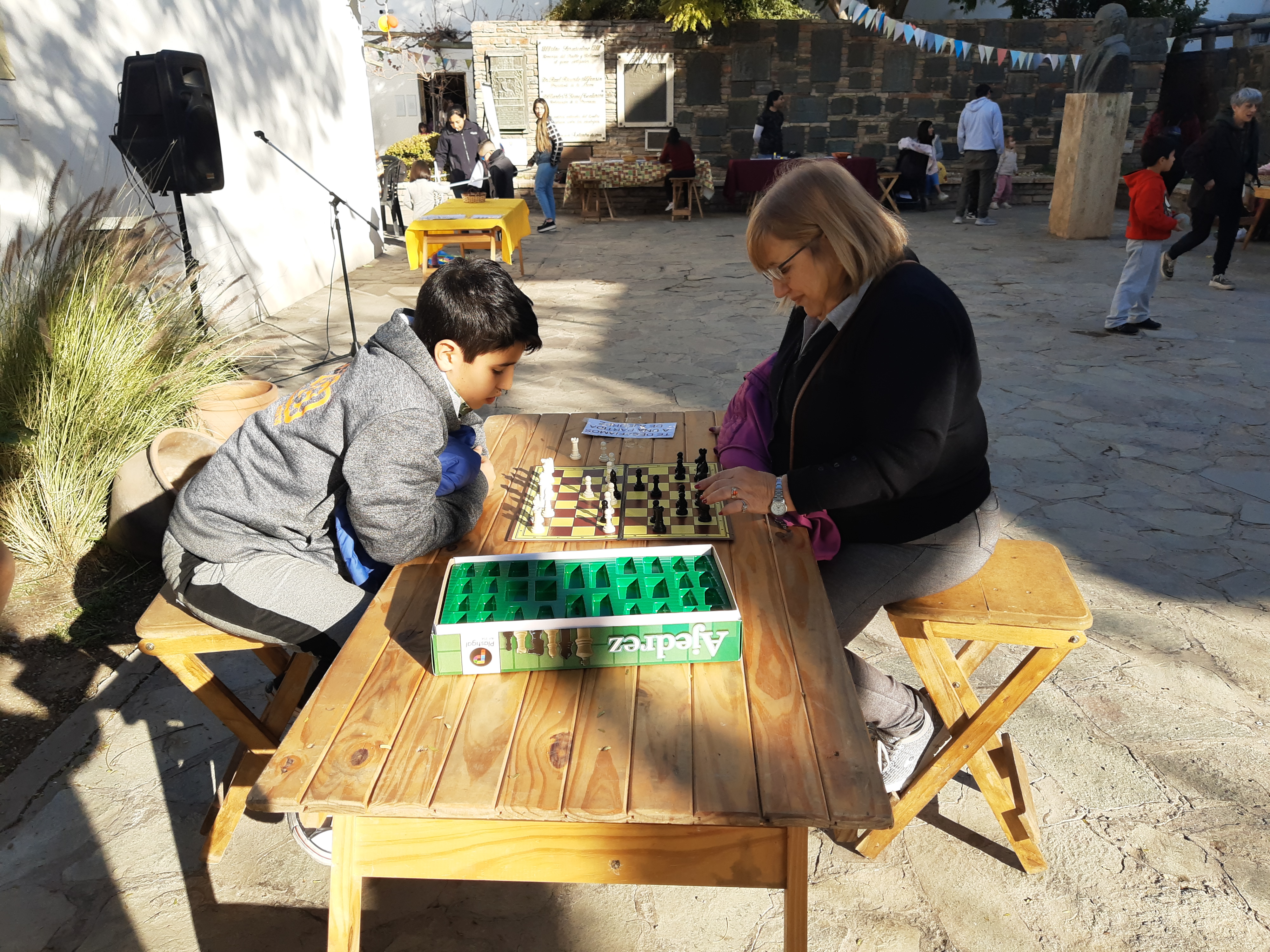 Concentradísimos, Antonella (7), Jovani (5) y Mía (3) trataban de resolver los rompecabezas, al tiempo que Conrado (13) y su abuela -de Tucumán- se entretenían con el ajedrez mientras esperaban que la mamá del adolescente saliera de una disertación. En otro rincón, oriundos de Buenos Aires, Lucila y sus tres hijos, Felix (9), Margarita (10) y Valentín (5), trabajaban en equipo para recolectar pescaditos y armar las frases. Joan (8) demostró ser un capo en el jenga, al igual que Mateo (7) elaborando tortas fritas.