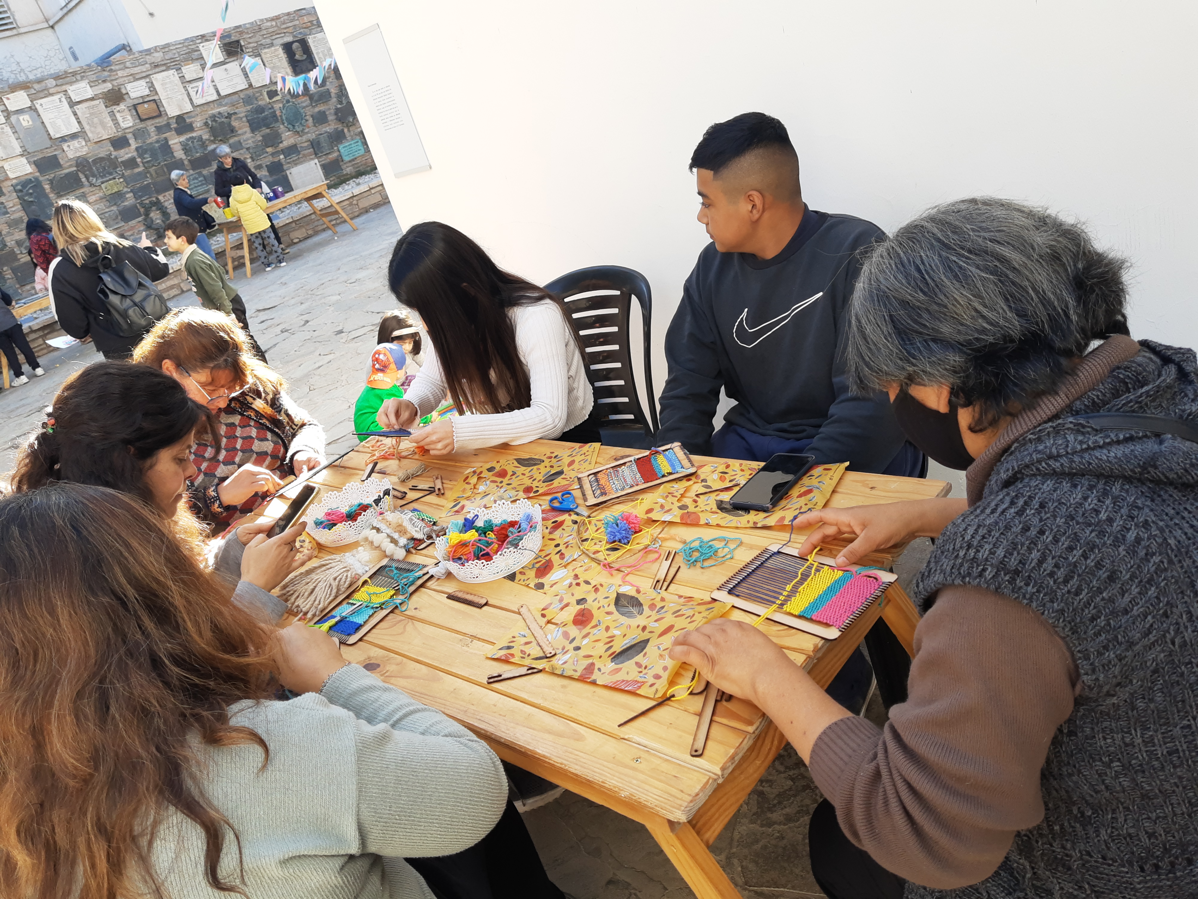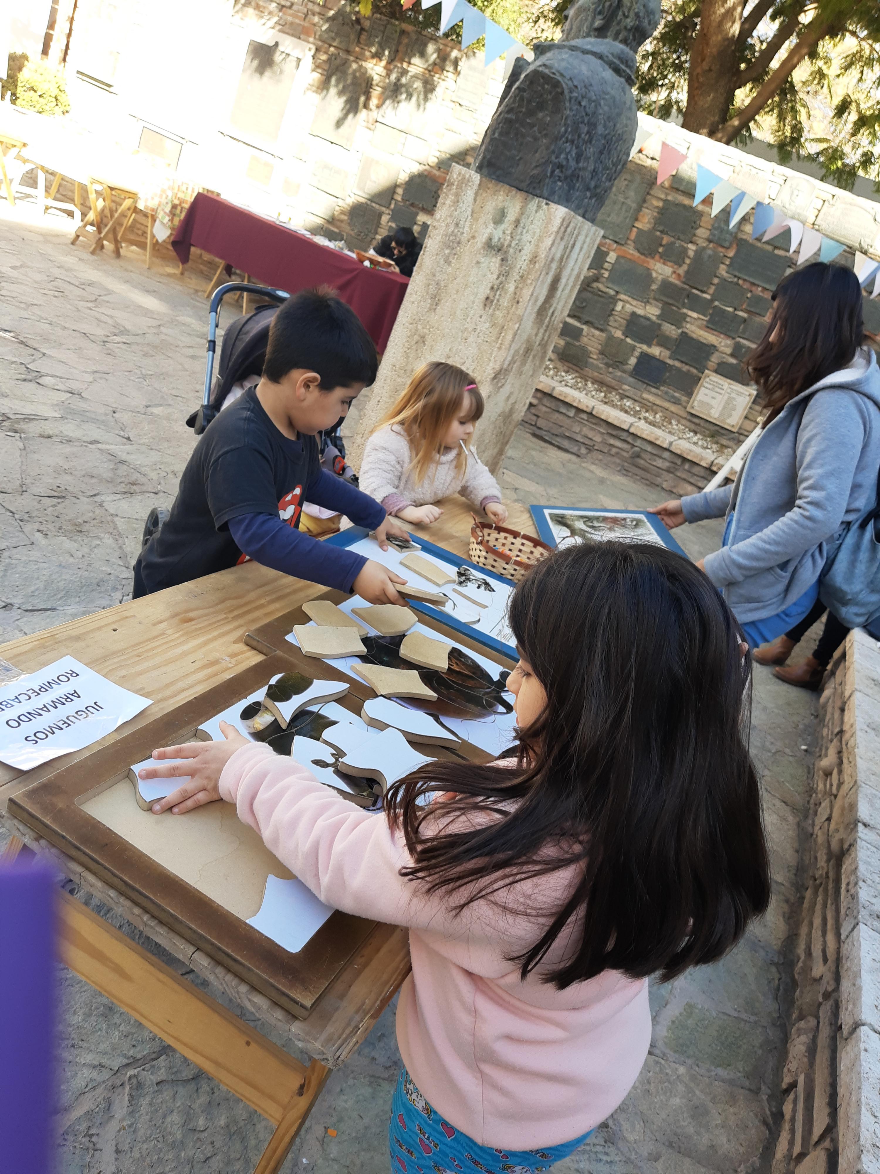Tiro al blanco, ajedrez y jenga fueron algunas de las opciones, además de una estación para tumbar latas con una pelota y otra para embocar anillas. Los rompecabezas, algunos de tapas de diarios de época (El Mosquito), tuvieron muchos adeptos, al igual que un juego de pesca, en el cual los pescaditos tenían palabras con las cuales debían formar frases célebres del gran Maestro de América. También hubo dos mesones llenos de láminas y colores para pintar; y un mini-taller de telar de mano, donde los más grandes sacaron a relucir su talento artesano. Y para acompañar, canastas con golosinas y sopaipillas recién fritas que los mismos chicos amasaban y cortaban guiados por dos cocineras, para luego compartir.
