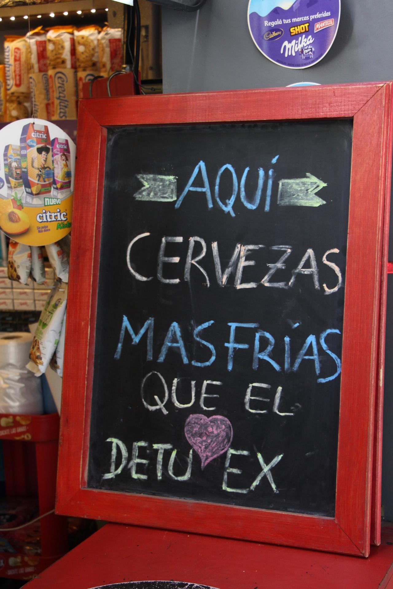 Hay muchas maneras de llamar la atención de los clientes. Estos vendedores, del kiosco ubicado en General Acha y Rivadavia, decidieron apelar al humor… ¿y al despecho? Puede ser, pero que es efectivo, eso nadie puede dudarlo.