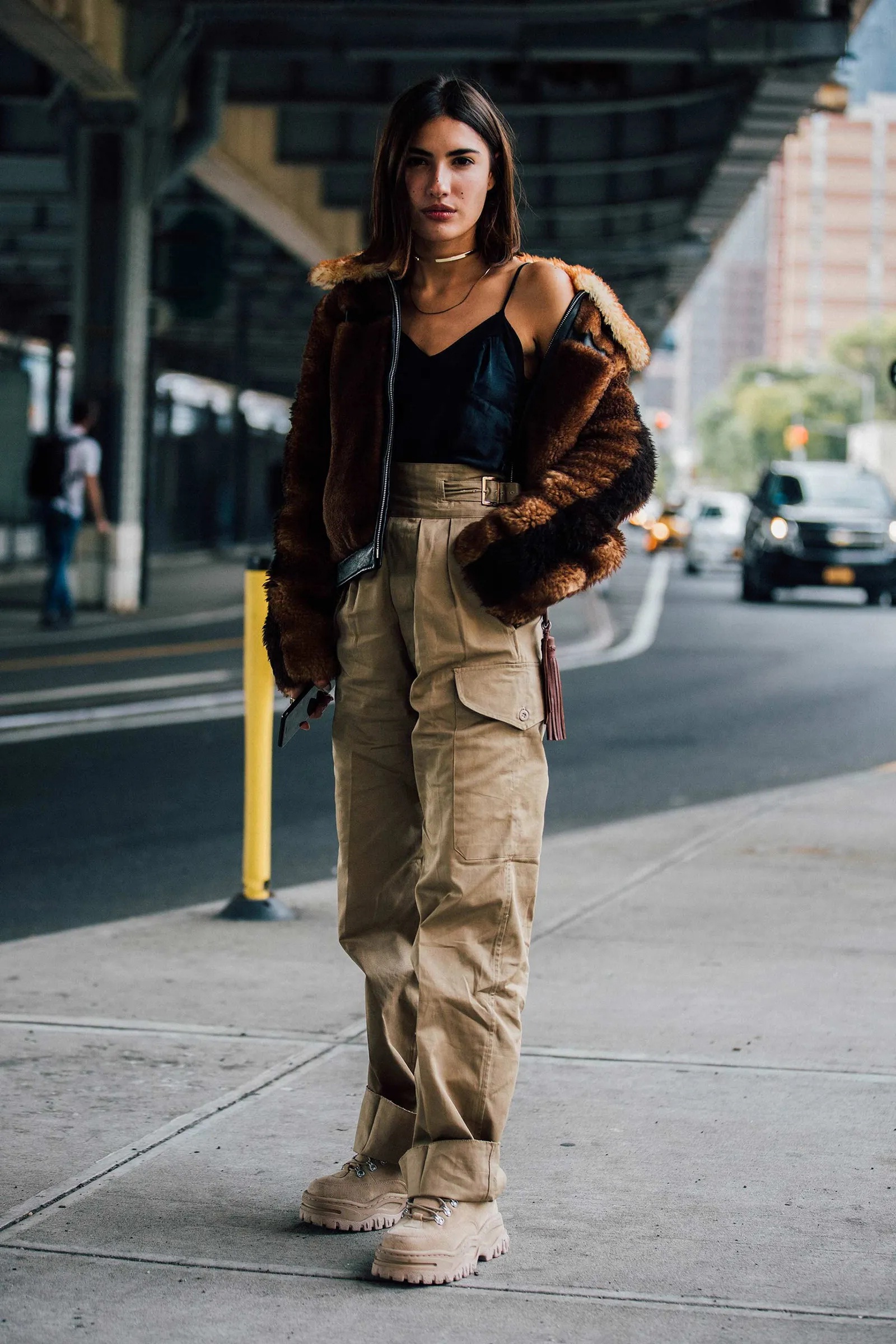 De inspiración militar, holgados y con bolsillos estilo parche, los pantalones cargo se han convertido en una de las prendas básicas para esta temporada por su gran versatilidad y estilo. Se presentan como una alternativa a los jeans y los pantalones de vestir, ya que permiten crear looks urbanos a la par que glamurosos. Las pasarelas internacionales y las firmas como Diesel,Blumarine y hasta Versace los han introducido en sus desfiles; y han levantado auténticas pasiones entre celebrities como Kendall Jenner, Bella Hadid y Hailey Bieber.