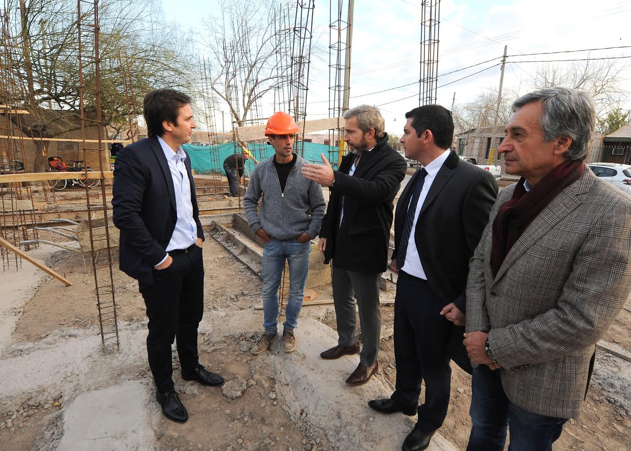 El ministro del Interior, Obras Públicas y Vivienda, Rogelio Frigerio, recorrió esta mañana junto con los primeros precandidatos a senador y a diputado nacional por el Frente Cambiemos por San Juan, Roberto Basualdo y Eduardo Cáceres, obras de hábitat en el departamento de Santa Lucía.