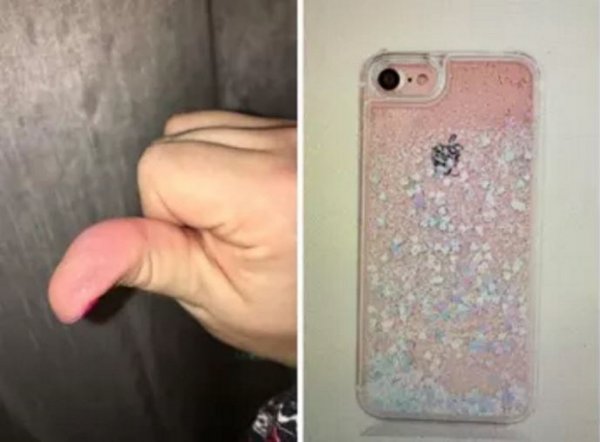 Melissa, otra de las afectadas, contó que notó que la funda estaba rota y que había empezado a filtrar agua y que empezó a dolerle el pulgar.