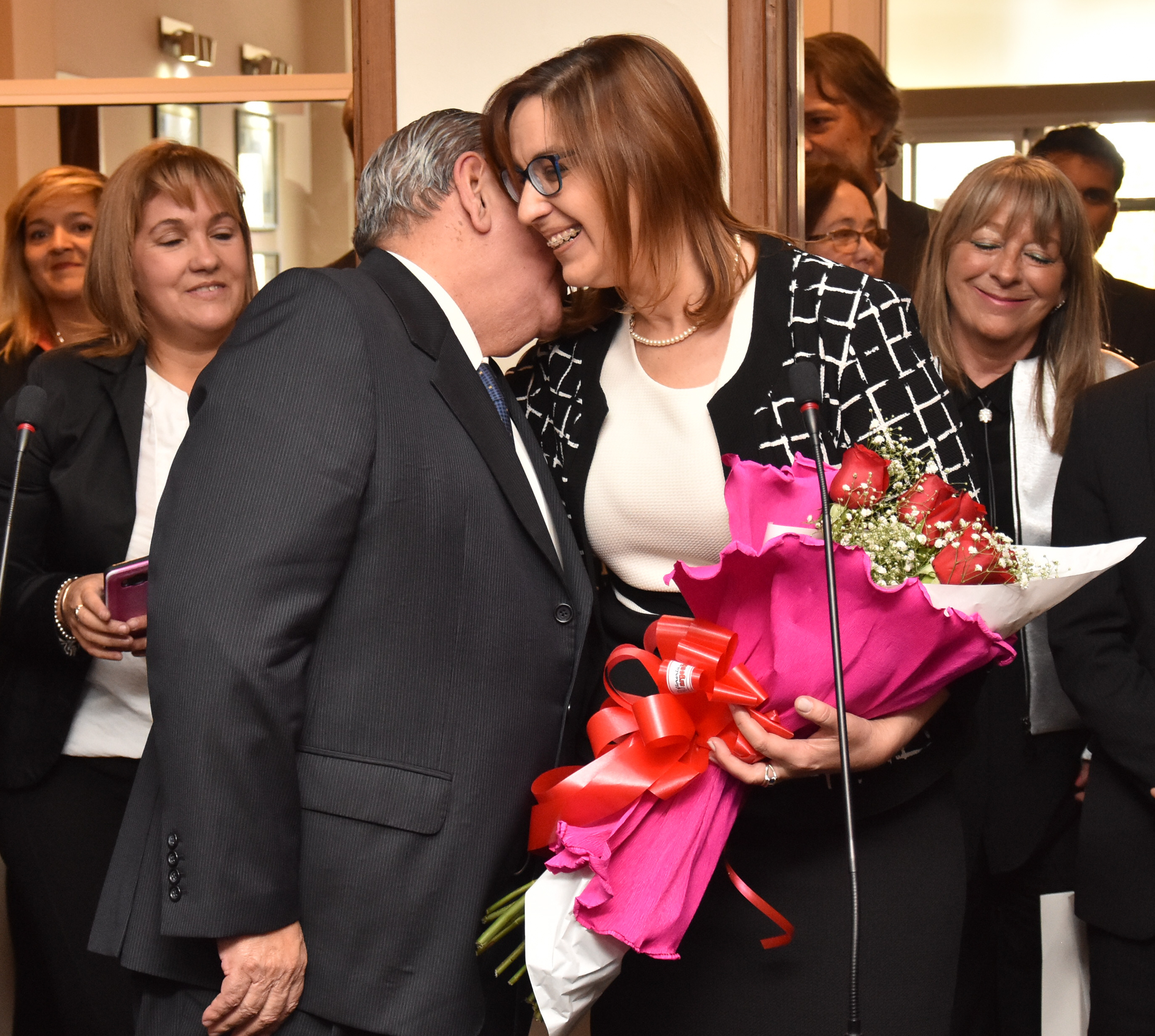 Obsequio. El presidente de la Corte, Abel Soria Vega, le entregó un ramo de rosas a su colega en señal de bienvenida.