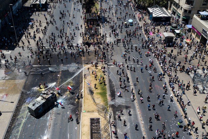 Mientras en Santiago, la red de buses de TranSantiago dejó de circular, lo que no impidió que nuevamente en Plaza Italia tenga lugar una masiva concentración. En la capital chilena además se registraron enfrentamientos entre Carabineros y grupos de manifestantes.