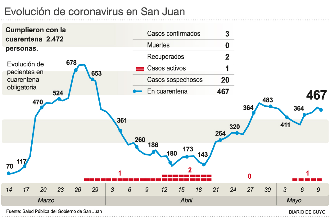 De esta manera, San Juan mantiene 3 casos de coronavirus, uno con infección en curso y dos recuperados.
