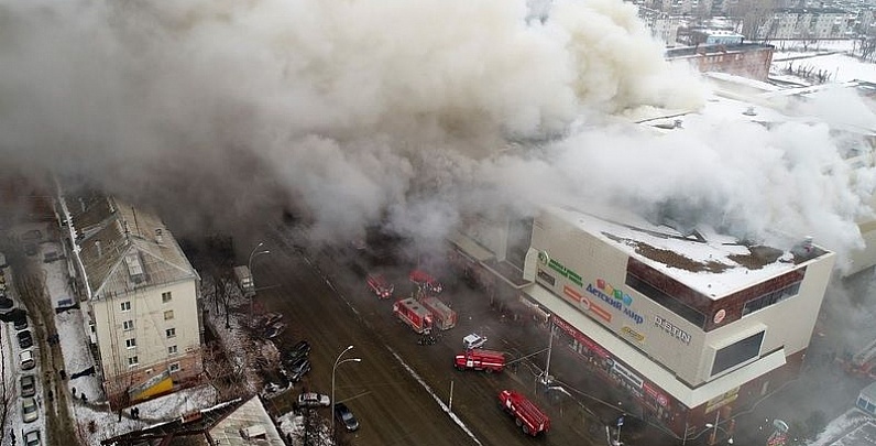 Datos preliminares apuntan a que el foco del incendio estaba en la planta superior del centro comercial, donde se encuentran las salas de cine y espacios de diversión para niños. Salas del edificio estaban cubiertas con plástico que al arder produjo humo cáustico, lo que contribuyó a la muerte de personas, según los servicios de emergencia, informa TASS.