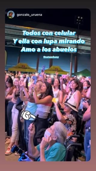 Antonia y su nieta Natalia Isolina Schony fueron al concierto y se viralizó el video de la abuela con su lupa siguiendo el concierto.