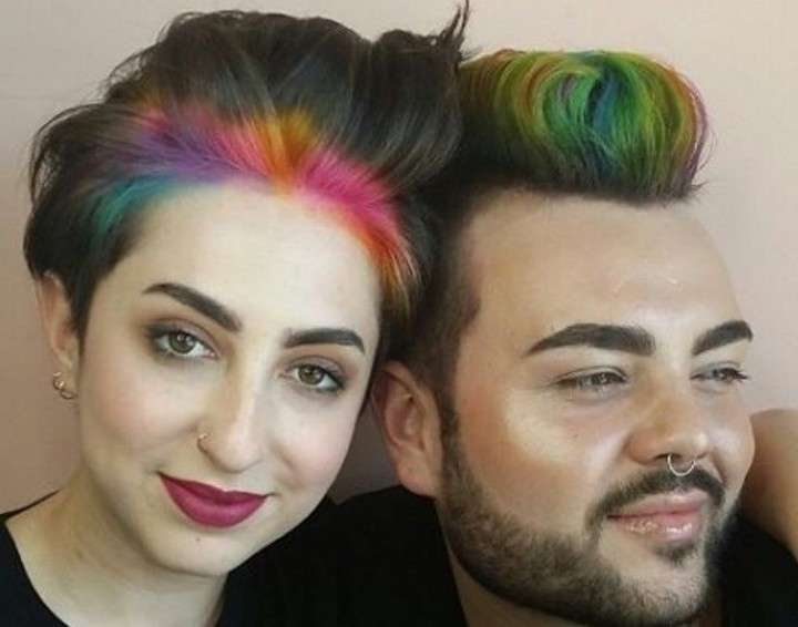 El resultado es llamativo, desde ya, aunque un poco menos impactante que llevar todo el cabello en versión arcoíris. En la cuenta de Instagram, los coloristas explican que, si la persona así lo quiere, los tonos fantasía solo se verán al mover el pelo o cuando aparece una ráfaga de aire.