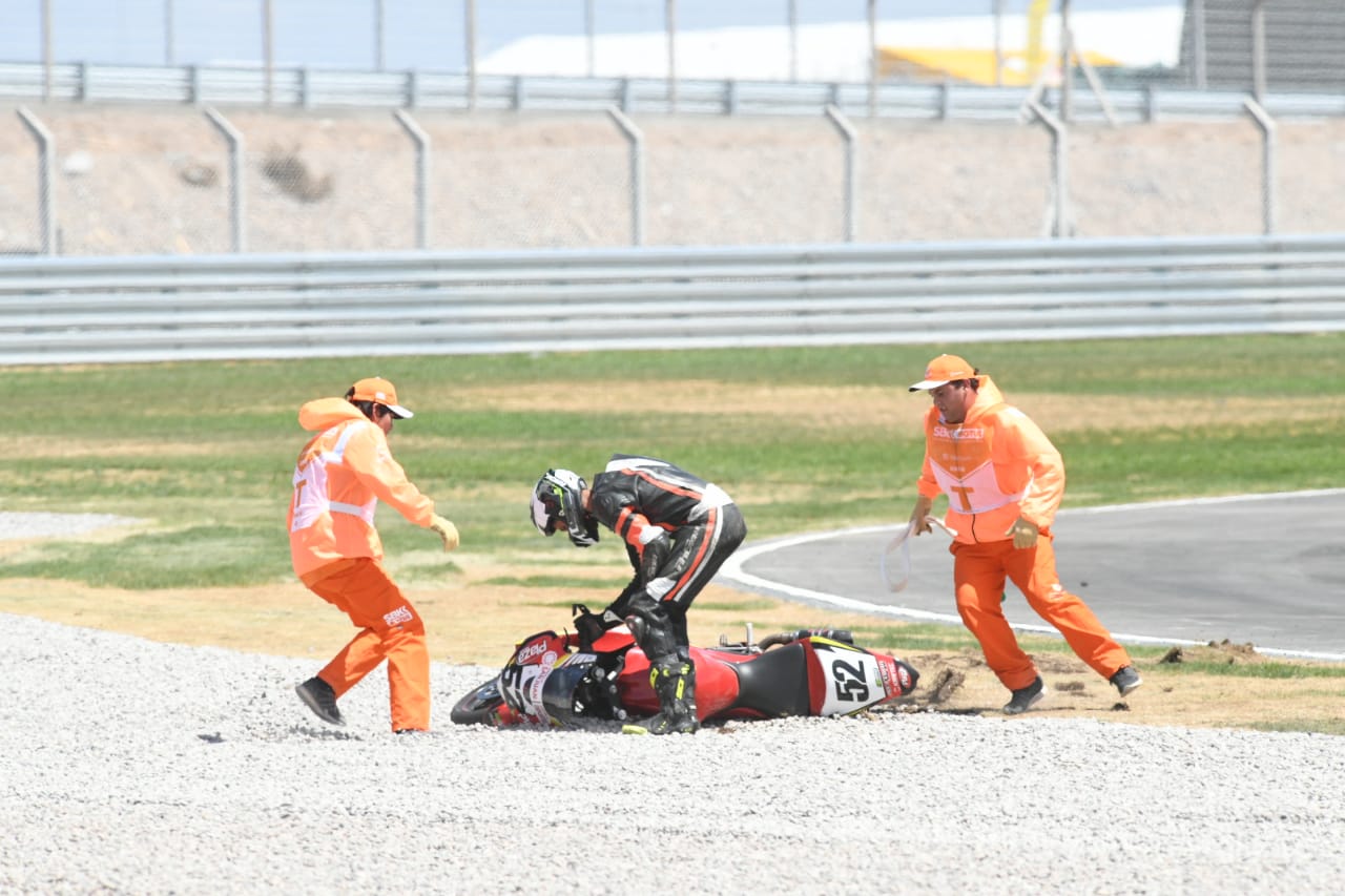 La carreras de motos tienen escenas que son atractivas para el público y dramáticas para los pilotos: las caídas. En la categoría que abrió el ruedo este sábado, la GP3 Américas, ocurrió una accidente que tuvo a un sanjuanino como protagonista.