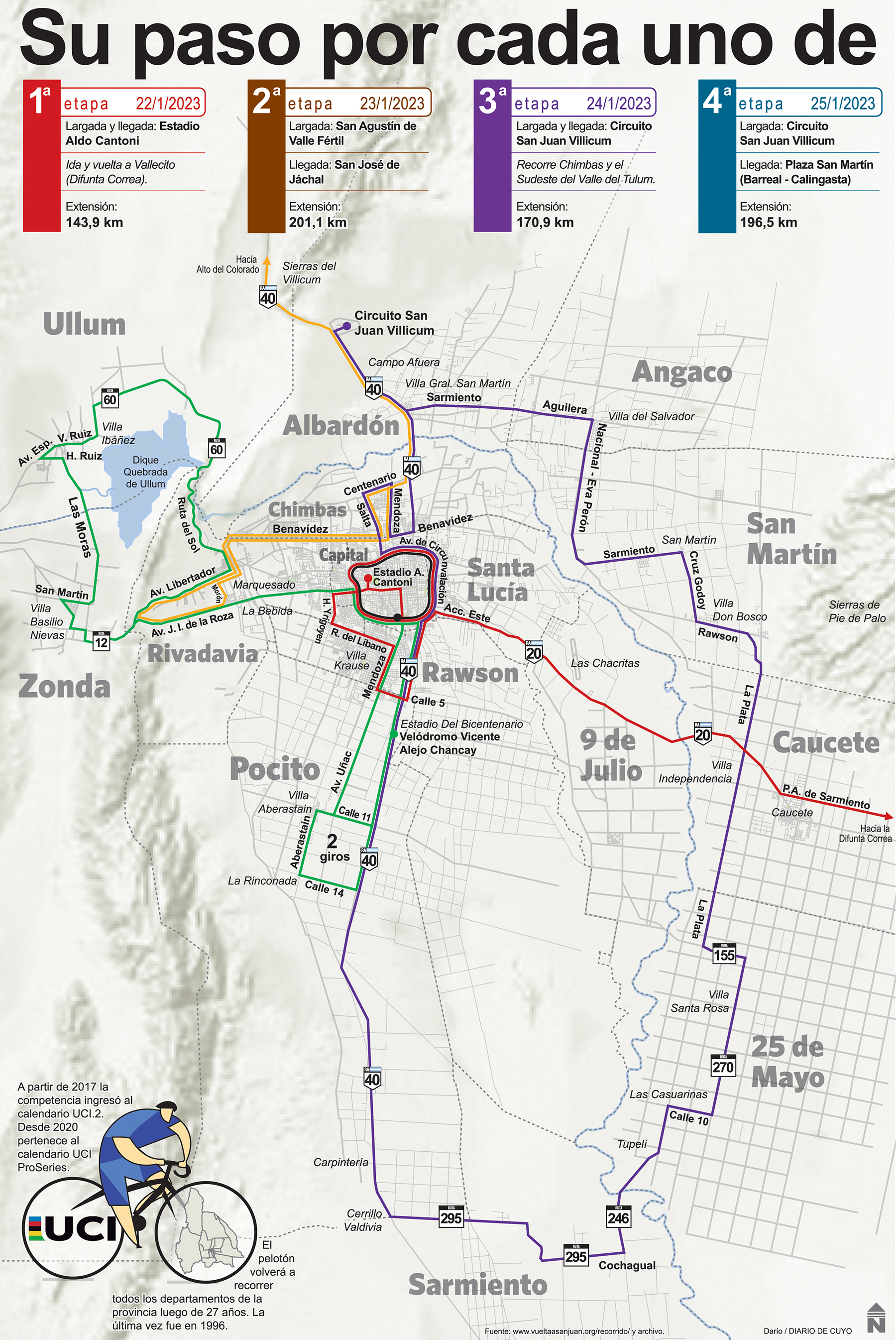 Diario de Cuyo | HOME | Noticias | Ciclismo Todas las etapas de la Vuelta Por Redacción Diario de Cuyo 17/01/2023 · 0:00 Escuchar la noticia Escuchar la noticia Your browser doesn’t support HTML5 audio Ciclismo vuelta a san juan 2023 Ver los comentarios ›