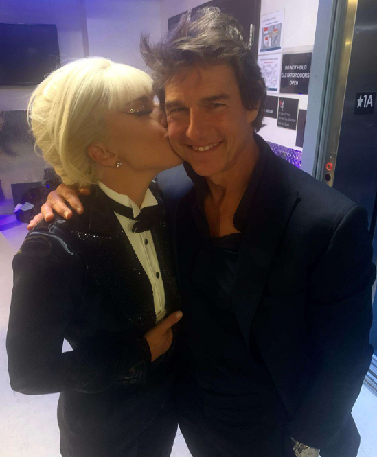 Gaga y Tom sellaron el encuentro con un beso en la mejilla que evidenció la excelente relación que tienen. De hecho, días atrás la intérprete le agradeció en público por haberle dado la oportunidad de grabar un tema para la nueva entrega de Top Gun.