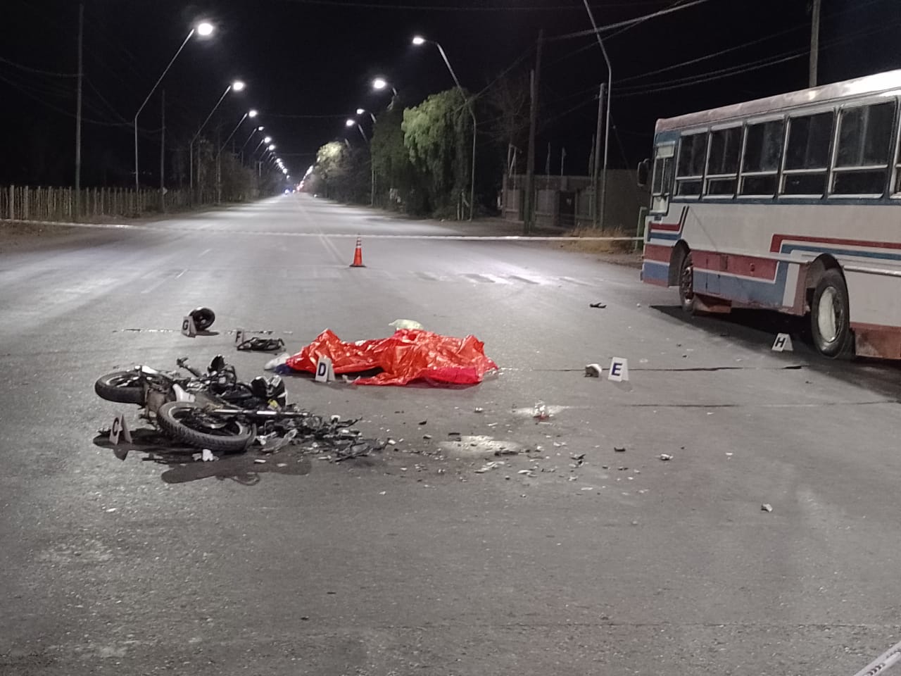 El accidente se produjo cuando la moto del joven circulaba por Calle 7, de Este a Oeste, y al llegar a la Avenida Uñac (calle Mendoza) impactó con la parte izquierda trasera de un colectivo Mercedes Benz que se dedica al traslado de cuadrillas. Tan violento fue el impacto que Tivani murió en el acto.