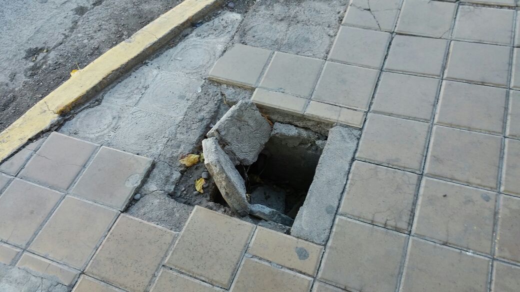 Un lector envió imágenes de un enorme pozo ubicado en el medio de una vereda del centro capitalino.