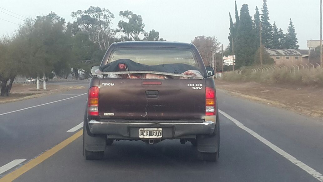 Un lector denunció que una camioneta transportó carne sin mantener la cadena de frío. Circulaba por Ruta 20 camino a Caucete.