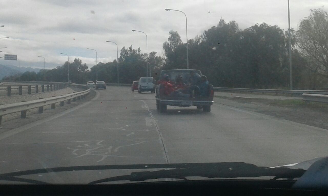 En la camioneta viajan personas pero como si fuesen animales. No tienen la seguridad correspondiente.