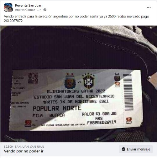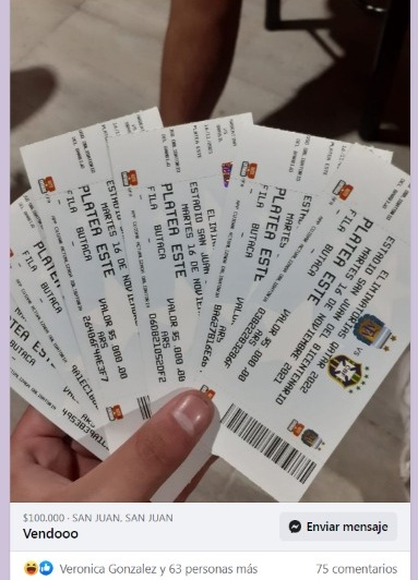 Populares de $3.000 se ofrecen en $15.000, mientras que Plateas Este de $5.000 se están ofreciendo hasta en $40.000, es decir, nueve veces más de lo que costaban.