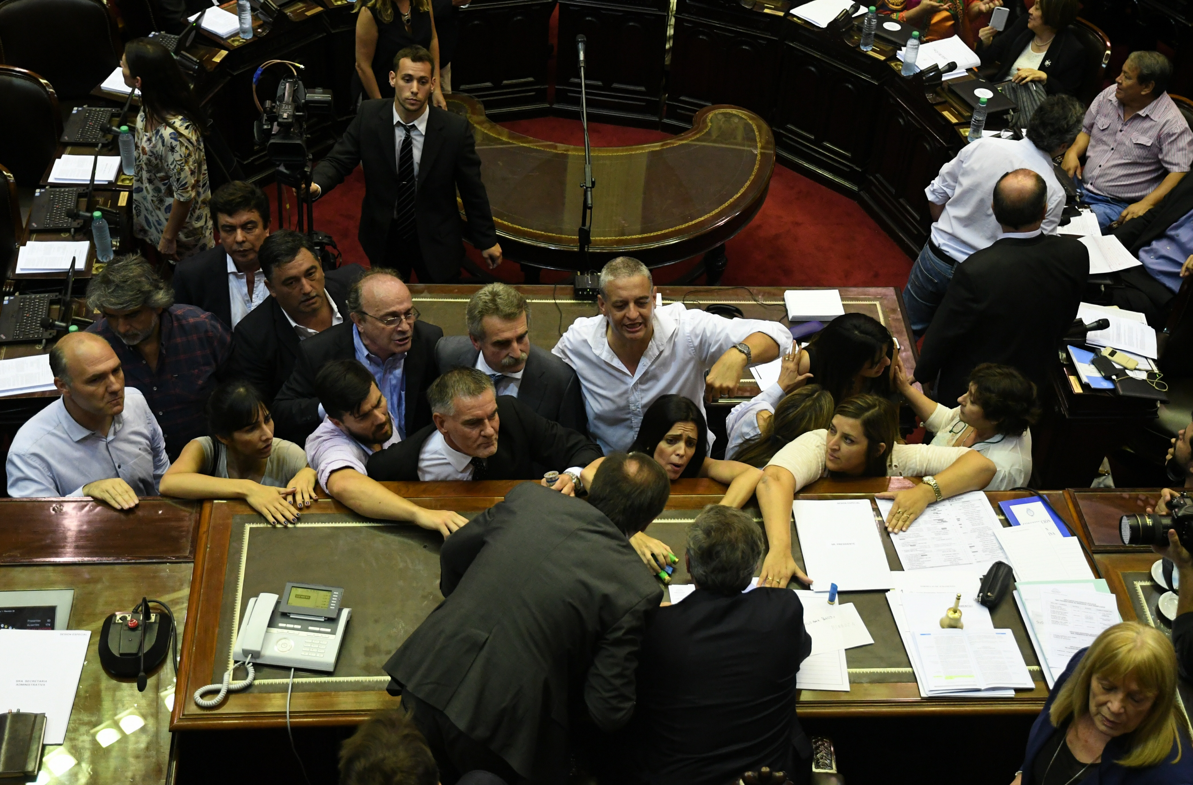Máxima tensión. Asistentes tuvieron que contener físicamente al presidente de la Cámara de Diputados, Emilio Monzó, que lanzó un manotazo al aire y en dirección al K Leopoldo Moreau, que lo trataba de “pelotud…” y de “hijo de put…”.