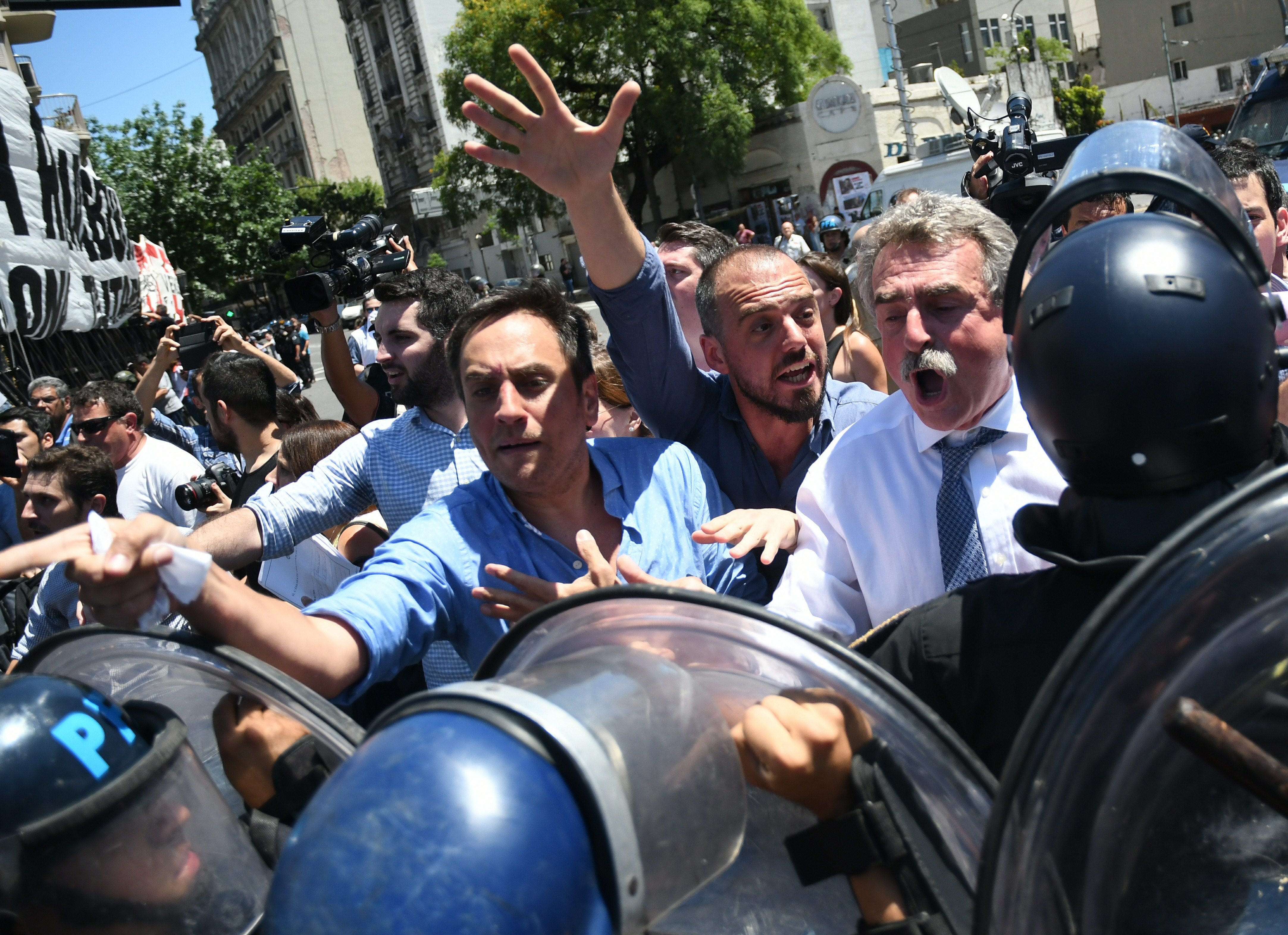 Rossi y otros. Los diputados K que salieron del Congreso para hablar con los manifestantes se enfrentaron con la Gendarmería al intentar cruzar el vallado.