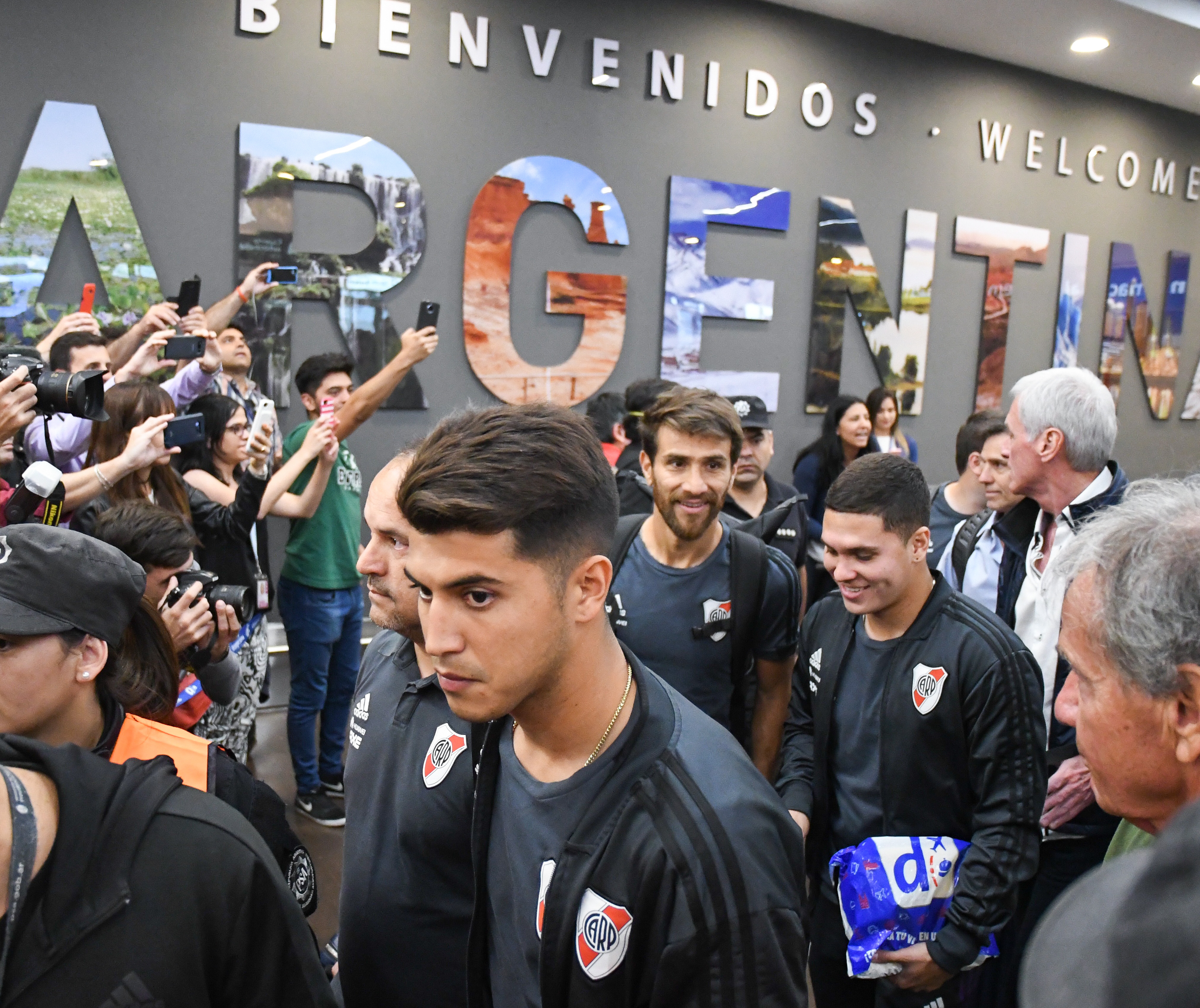 El plantel de River Plate, que conduce Marcelo Gallardo, regresó al país ayer por la tarde luego de la histórica semifinal de la Copa Libertadores de América que le ganó a Gremio, en Brasil, por 2 a 1 en el cotejo de vuelta (perdió 0-1 en la ida) y esperaba su rival que definían entre Palmeiras (0) y Boca Juniors (2) para conocer con quien se va a enfrentar en la final.