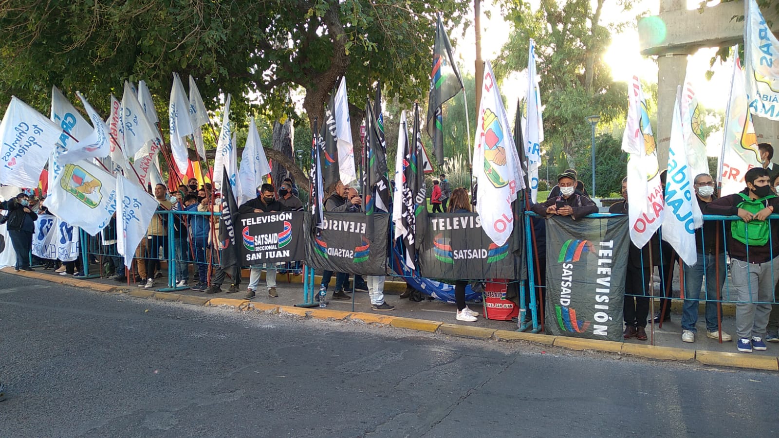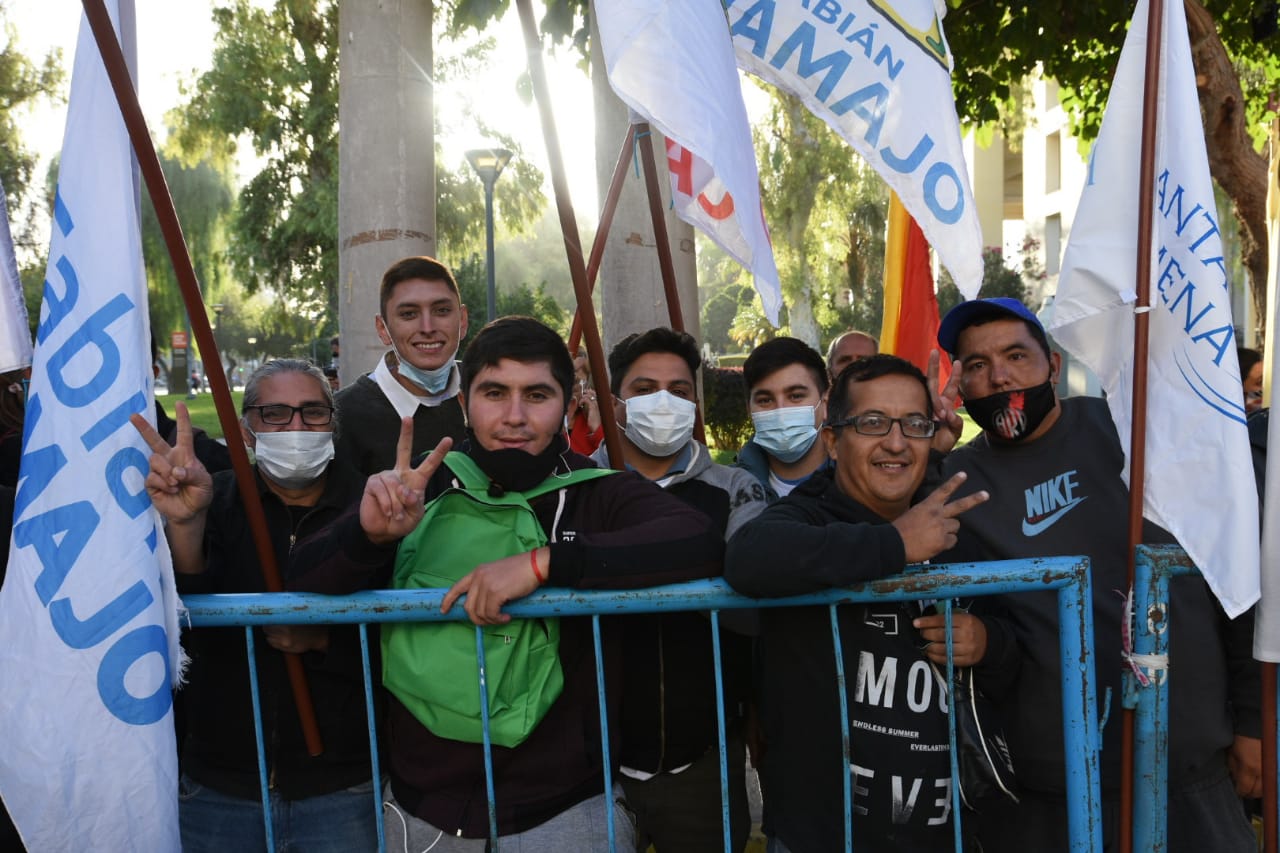 Juntas departamentales como la de Chimbas, Ullum, Santa Lucía y Caucete, Barrios de Pie, Agrupación Virgen de Fátima y miembros de Frente Grande, son algunos de los militantes que llegaron muy temprano con muchas banderas.