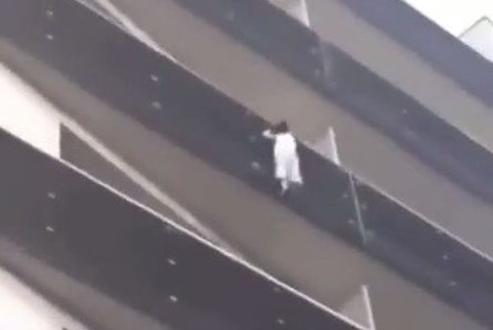 El suceso, espectacular, grabado y difundido por las redes sociales, muestra a un joven escalar a mano limpia cuatro balcones para llegar al cuarto piso en 30 segundos, recuperar al niño suspendido y ponerlo a salvo.