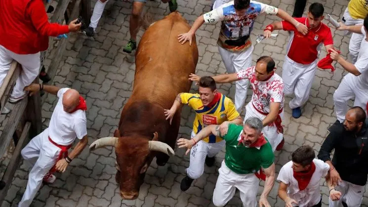 Como cada año, miles de personas, procedentes de todo el mundo, desafiaron al miedo y corrieron delante de toros bravos en los encierros, siguiendo una antigua tradición.