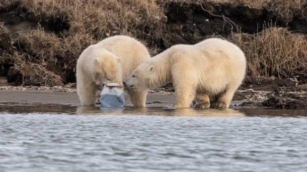 Un fotógrafo capturó la secuencia de dos osos polares jóvenes que se disputaron un pedazo de plástico en la orilla de un río de Alaska, en Estados Unidos, y las fotos se convirtieron en un triste viral.