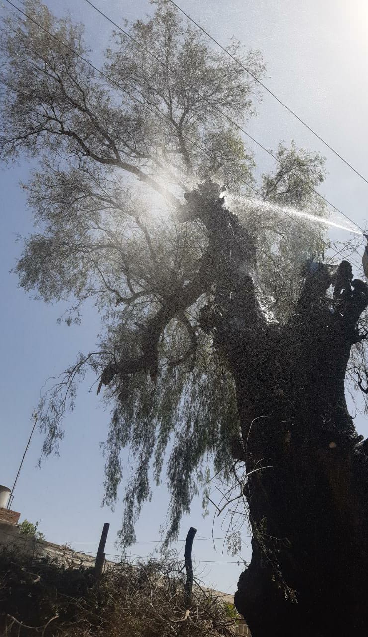 El ejemplar de más de 40 años se convirtió en chimenea y causó temor entre los vecinos. El personal especializado explicó que las lenguas de fuego alcanzaban el tendido monofásico y trifásico de la zona pero lograron sofocar el incendio y poner al resguardo a los vecinos.