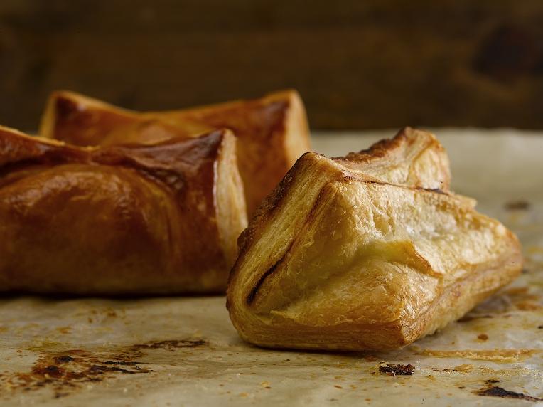 Espolvorear una mesada con harina y estire la masa de hojaldre de 2 milímetros de espesor. Corte cuadrados de 10cm. de lado. Coloque trozos de membrillos en almíbar en el centro de la masa. Pinte los bordes con huevo batido, doble al medio y presione para cerrar. Acomode los pastelitos en una placa para horno previamente enmantecada. Pinte la superficie con huevo de los pastelitos y espolvoree con azúcar impalpable. Cocinar en horno precalentado a 200¦C los primeros 10 minutos y luego baje la temperatura a 180¦C. Hornear 20 minutos más hasta que estén bien dorados y crocantes.