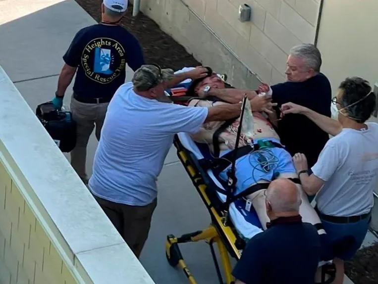 El autor de los "Versos satánicos" ha sido intervenido quirúrgicamente tras ser trasladado en helicóptero al hospital con graves daños en el brazo y el hígado. "Probablemente perderá un ojo, los nervios de su brazo se han cortado y su hígado se ha lesionado y dañado", dijo al New York Times.