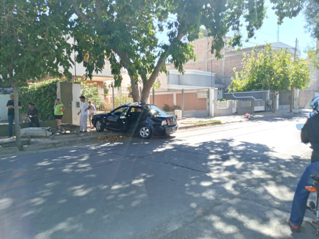 Según las fuentes, el Volkswagen tras impactar con la camioneta volteó un gabinete de gas y terminó golpeando de costado contra un gran árbol.