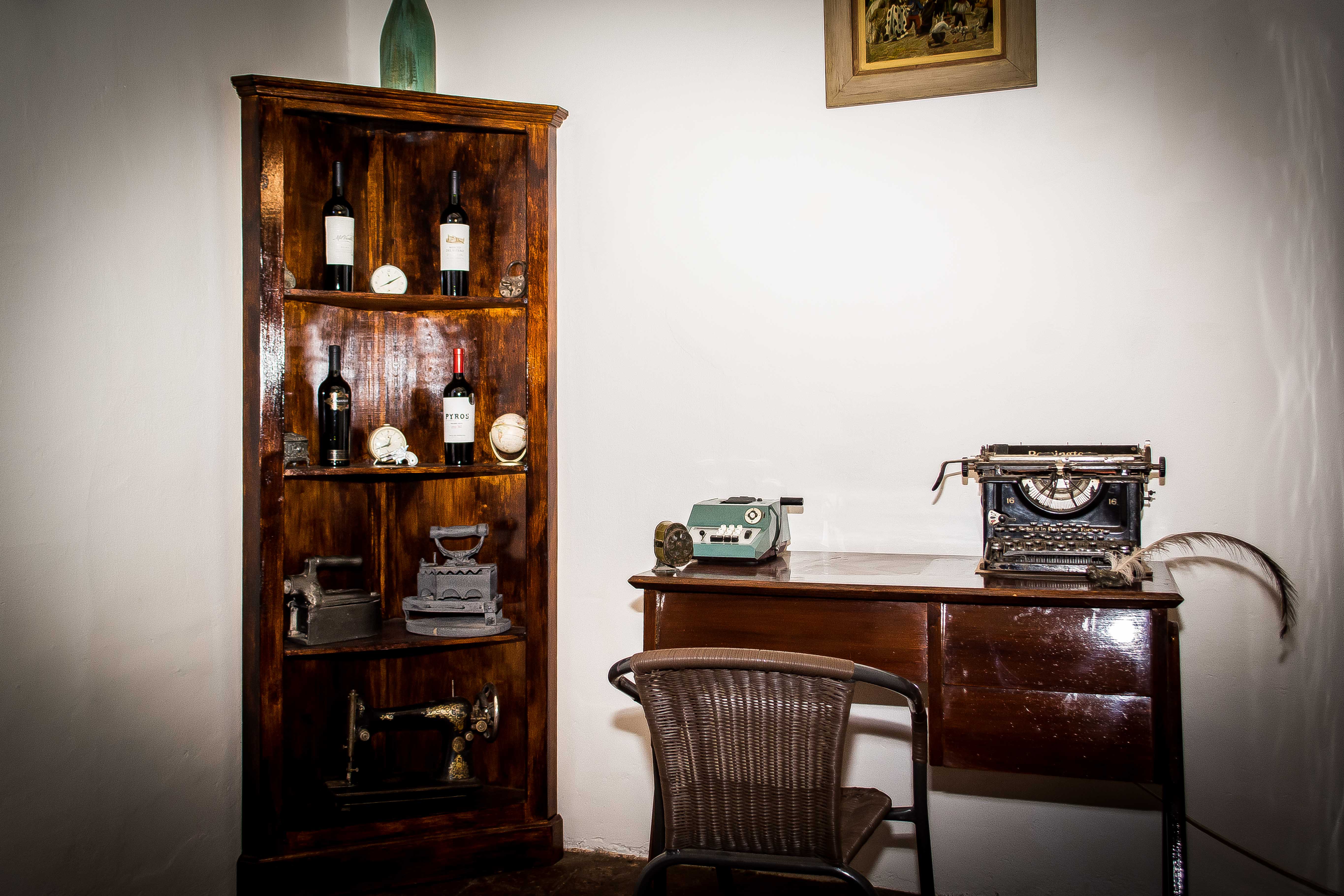 Pero a su vez, darle un nuevo sentido, valorando la producción local y brindando la posibilidad de vivir una experiencia no sólo con la vitivinicultura vino sino por medio de los objetos", cuentan quienes siempre tuvieron en mente la idea de ofrecer un espacio típicamente sanjuanino. Por eso, además de dotar el lugar con cientos de vinos de diferentes bodegas, cepajes y varietales, entre otras bebidas alcohólicas que también venden, más productos típicos de San Juan (como dulces, conservas, frutos secos, aceite de oliva), cristalería y accesorios del vino, que se combinan con una serie de elementos distribuidos en las distintas habitaciones a través de los cuáles se puede hacer un viaje imaginario en el tiempo como lámparas antiguas, algunos muebles de antaño, una campana de hierro, la máquina de coser de la abuela Antonia, sifones y botellones, planchas a carbón, la máquina de escribir con la que el abuelo relataba sus rutinas, valijas antiguas y muebles perfectamente mantenidos.