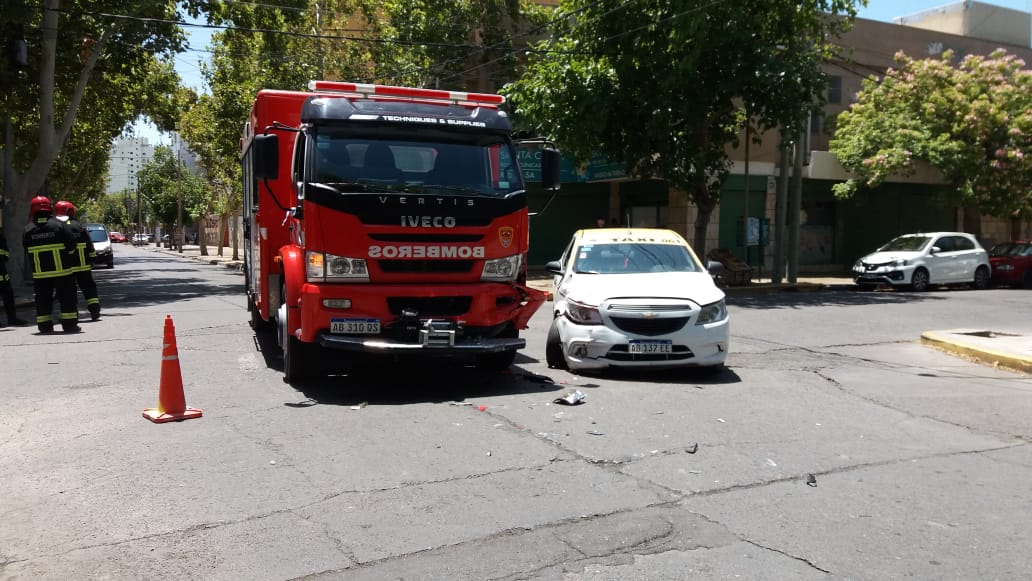 Pasado el mediodía de este jueves, se registró un accidente de tránsito que tuvo como protagonistas a un camión de Bomberos y a un remis.