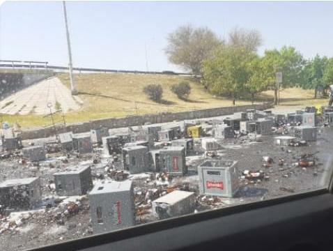 Una mala maniobra terminó con más de 50 cajones de cerveza regados por el Lateral de Circunvalación, en la mañana de este sábado.