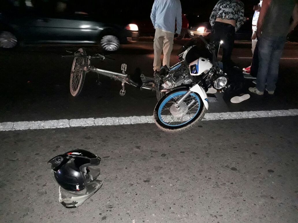Un terrible accidente se produjo anoche, sobre Ruta 20, cuando un ciclista que llevaba una segunda bicicleta al lado fue envestido desde atrás por una moto.