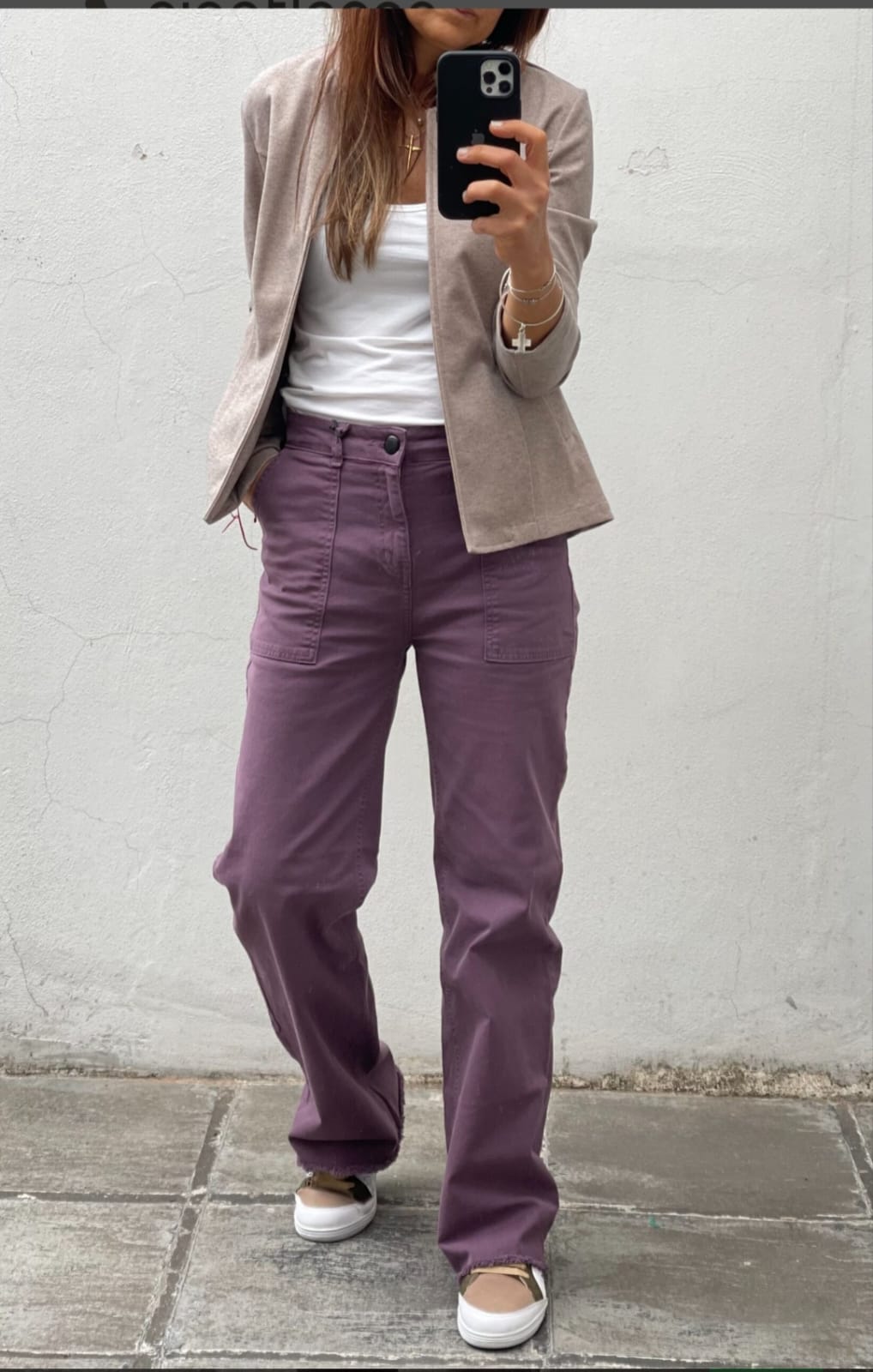 Wide Grape: Pantalón tiro alto y pierna wide leg. Bolsillos plaqué y botamanga desflecada. Lavado color uva. Picaflores, $24290