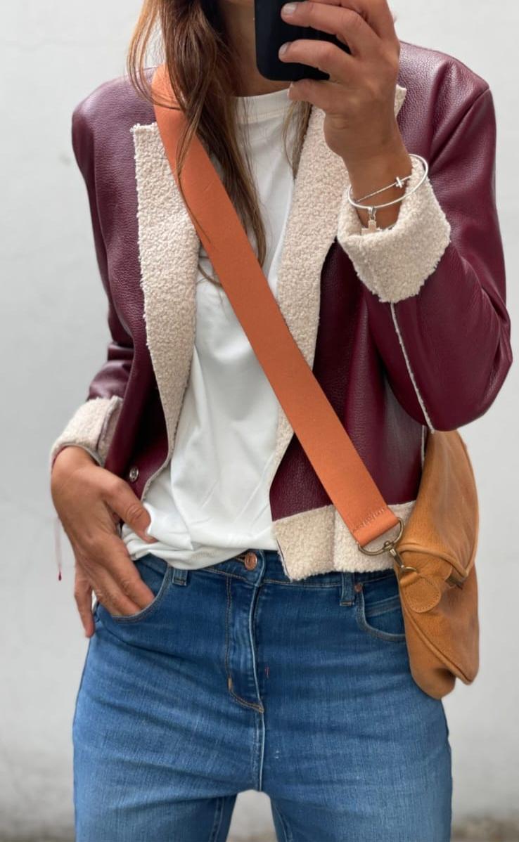 Campera Lara: Campera con efecto cuero graneado y en su interior corderito. Super calentita. Avíos color níquel. Talles 1 y 2. Picaflores, $39000