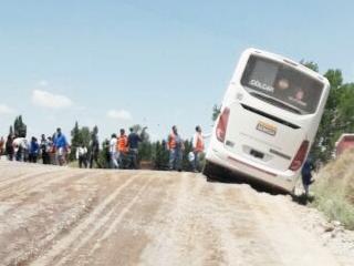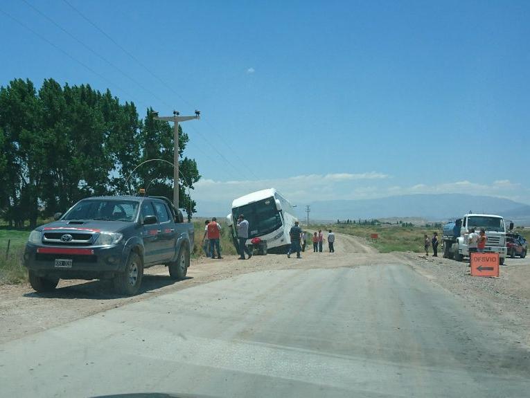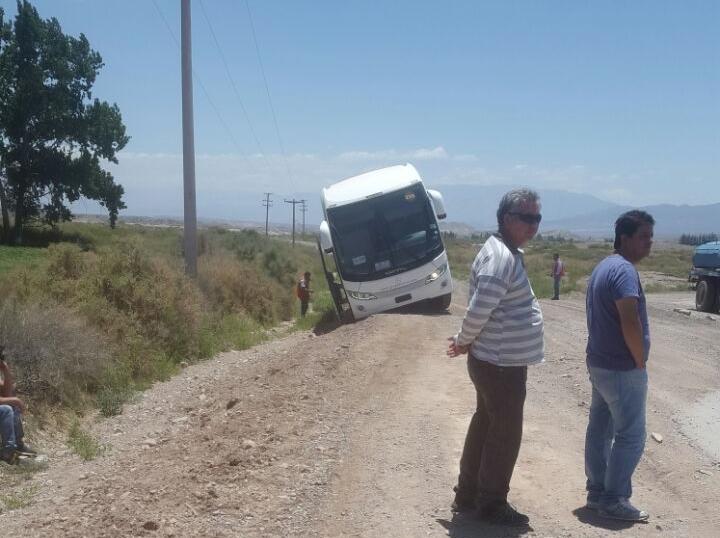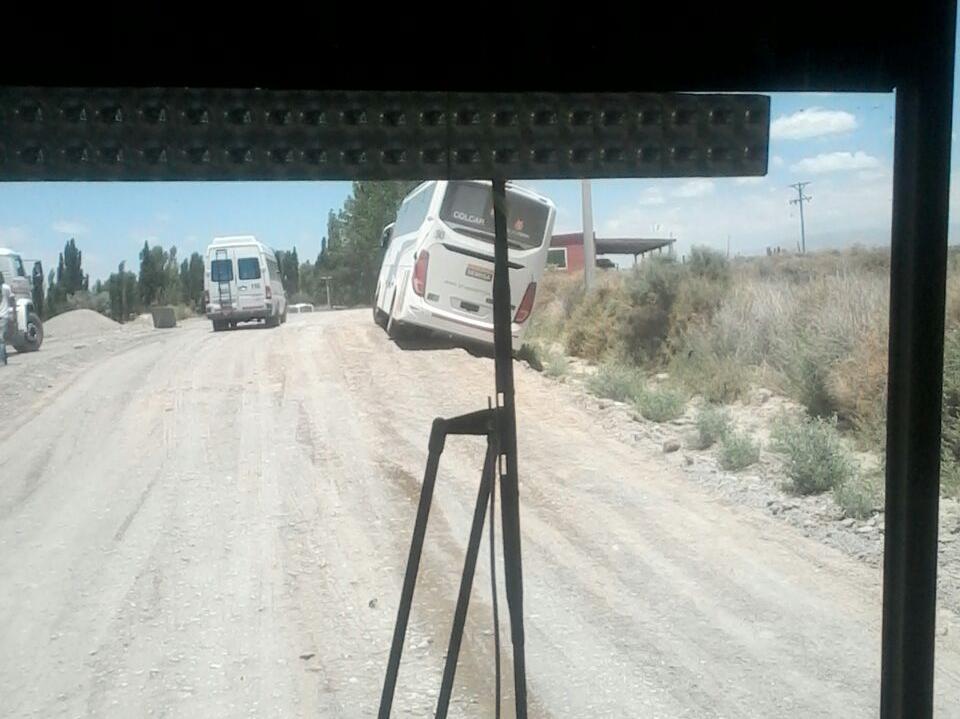 Cerca del mediodía, un colectivo de la empresa Semisa que transportaba mineros a la ciudad de San Juan desde Veladero tuvo un inconveniente en el camino y casi se da vuelta.