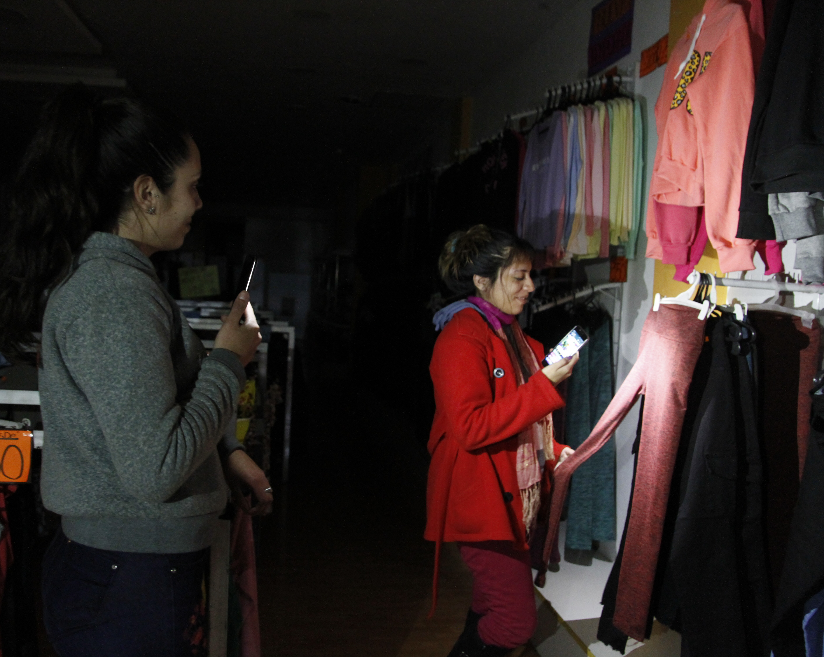 En el local de venta de bijouterie de calle General Acha pasando Santa Fe, las puertas permanecieron cerradas mientras el personal trabajaba en su interior bajo la luz de emergencia y con las pocas linternas que tenían a mano. Sólo se atendía a una persona a la vez por lo que una cliente tuvo que esperar varios minutos en la vereda a que Marcelo, encargado del local, terminara de cerrar la compra. Algo similar le ocurrió a Juancito, la tradicional peluquería de la Galería Estornell, que con una luz de emergencia dio sus últimas estocadas y tuvo que despachar a un segundo cliente por carecer de luz.