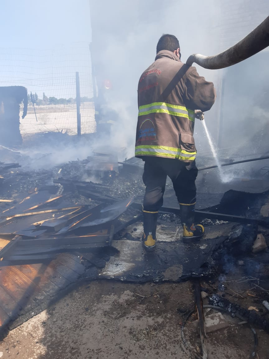 Bomberos de Santa Lucía se hicieron presentes en el lugar y lograron extinguir el fuego antes de que llegara hasta un depósito y también a la vivienda del propietario, Fabián Cortéz (47).