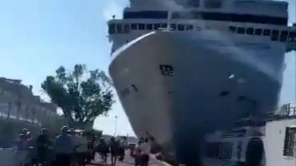 En las imágenes difundidas por las redes sociales puede verse a numerosas personas corriendo por el muelle, donde quedó estacionado el crucero tras la colisión.