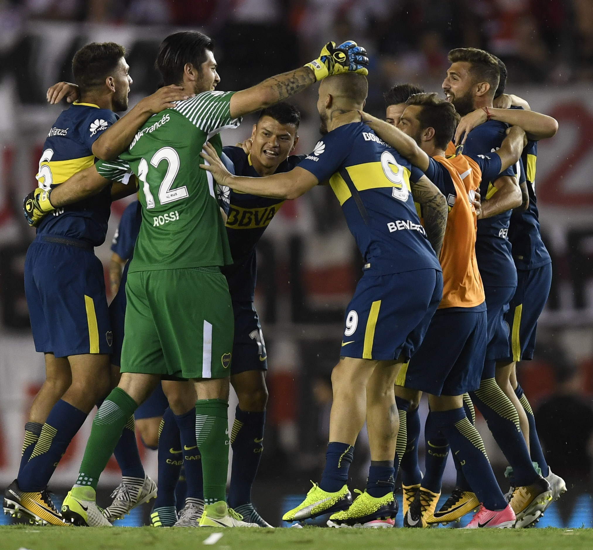 La ronda de la felicidad. Los futbolistas de Boca celebran la victoria en el clásico. En el choque ante el eterno rival número 200 en el ámbito local, el xeneize estiró su ventaja en el historial a una decena de encuentros.