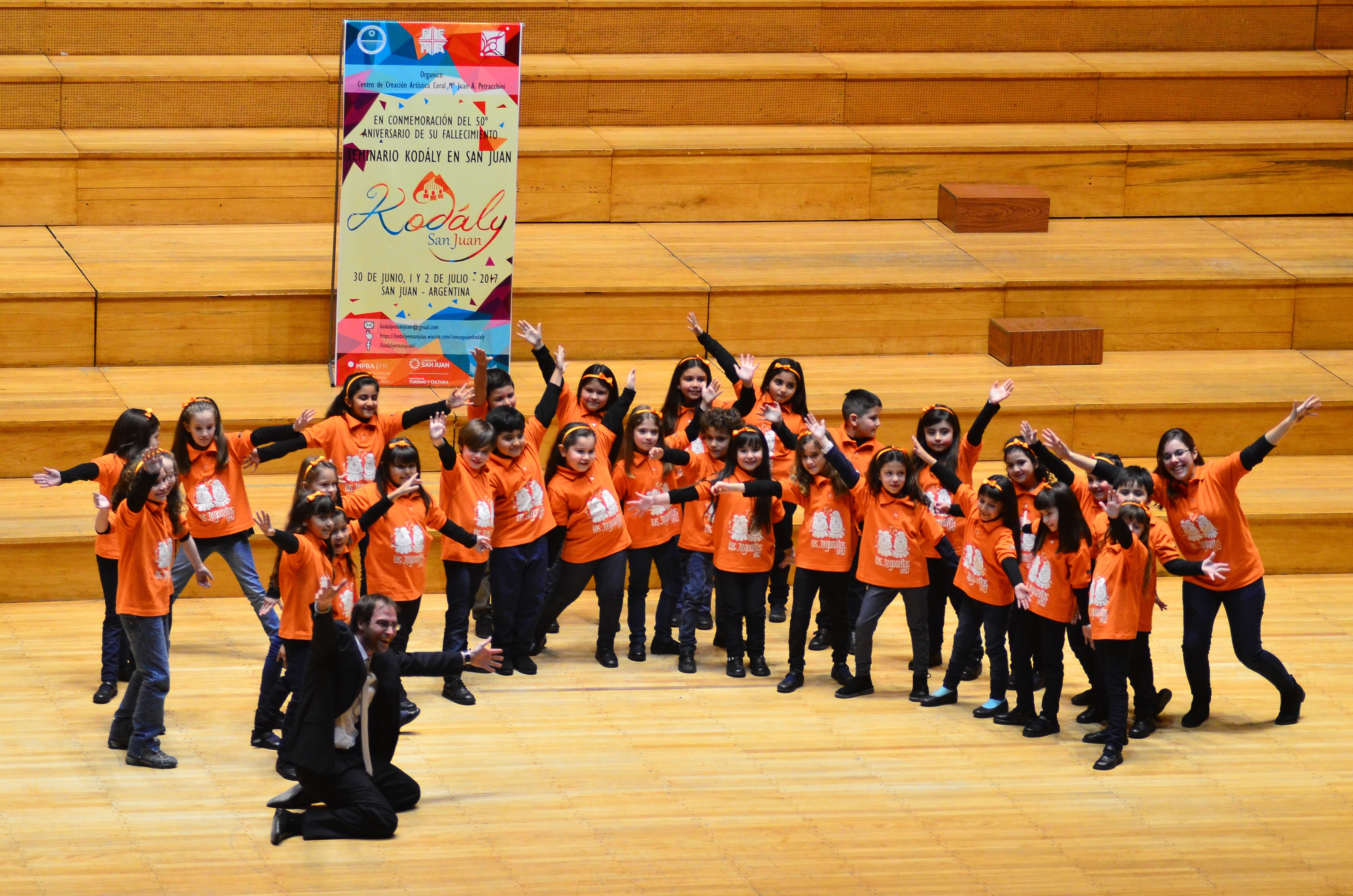 Cada uno vestido con una remerita naranja y alineados en semicírculo; así hicieron su presentación Los Jilgueritos, anoche, en el cierre del 1er. seminario sobre Kodály en San Juan. Los pequeños coreutas de entre 5 y 7 años de edad, tuvieron su bautismo de fuego en el Auditorio J. Victoria como integrantes de una novedosa formación dependiente de la UNSJ.