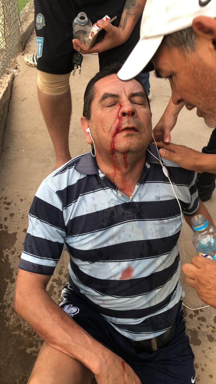 En medio de un duelo caliente, un miembro de la comisión directiva del equipo visitante, Raúl Pacheco, recibió un fuerte piedrazo en su rostro, que le provocó algunos cortes y tuvo que ser asistido en el lugar.