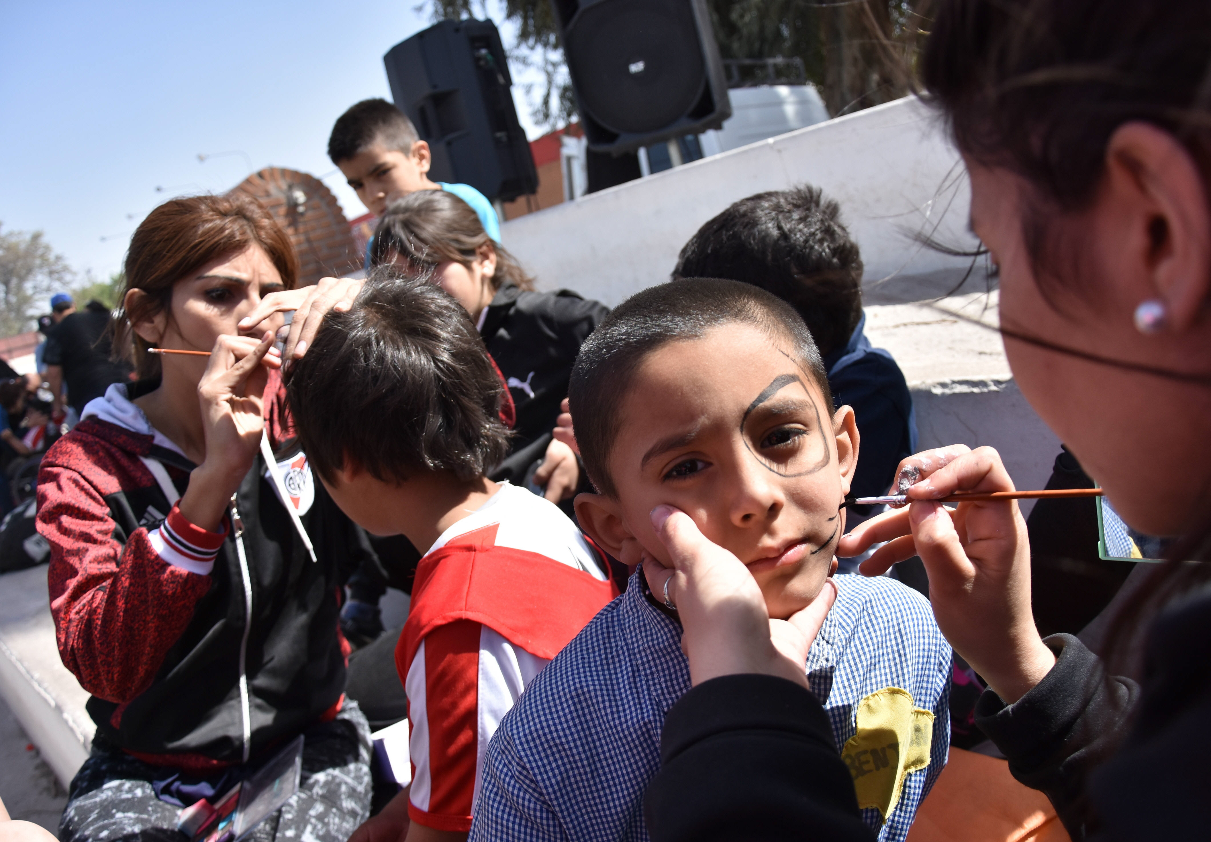 Artístico. En un sector de la cancha, en las tribunas, los chicos pudieron divertirse con los maquillajes artísticos en el rostro.