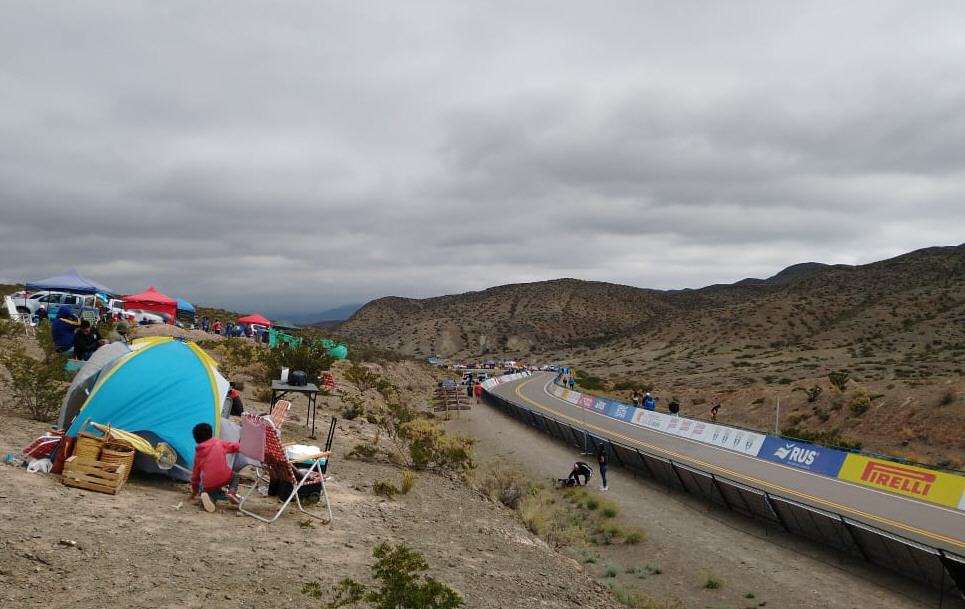 Antes de pasar por el derivador los agentes de policía paraban a las movilidades y consultaban a sus conductores cuál era su destino, a quienes le contestaban que era arribar al lugar donde culminaba la carrera le anticipaban: "Está lleno arriba, no hay lugar". La respuesta parecía demasiado exagerada, pero al acercarnos a la meta, ubicada 53 kilómetros más al norte, se empezaba a ver muchos grupos de aficionados ubicados a la orilla de la ruta, con sus clásicos asados. El frío en la parte culminante del quinto parcial de esta Vuelta, que puso al termómetro en la tarde sobre apenas los 12 grados, no impidió realizar las ya clásicas reuniones sociales para esperar a los pedaleros tras semejante esfuerzo.