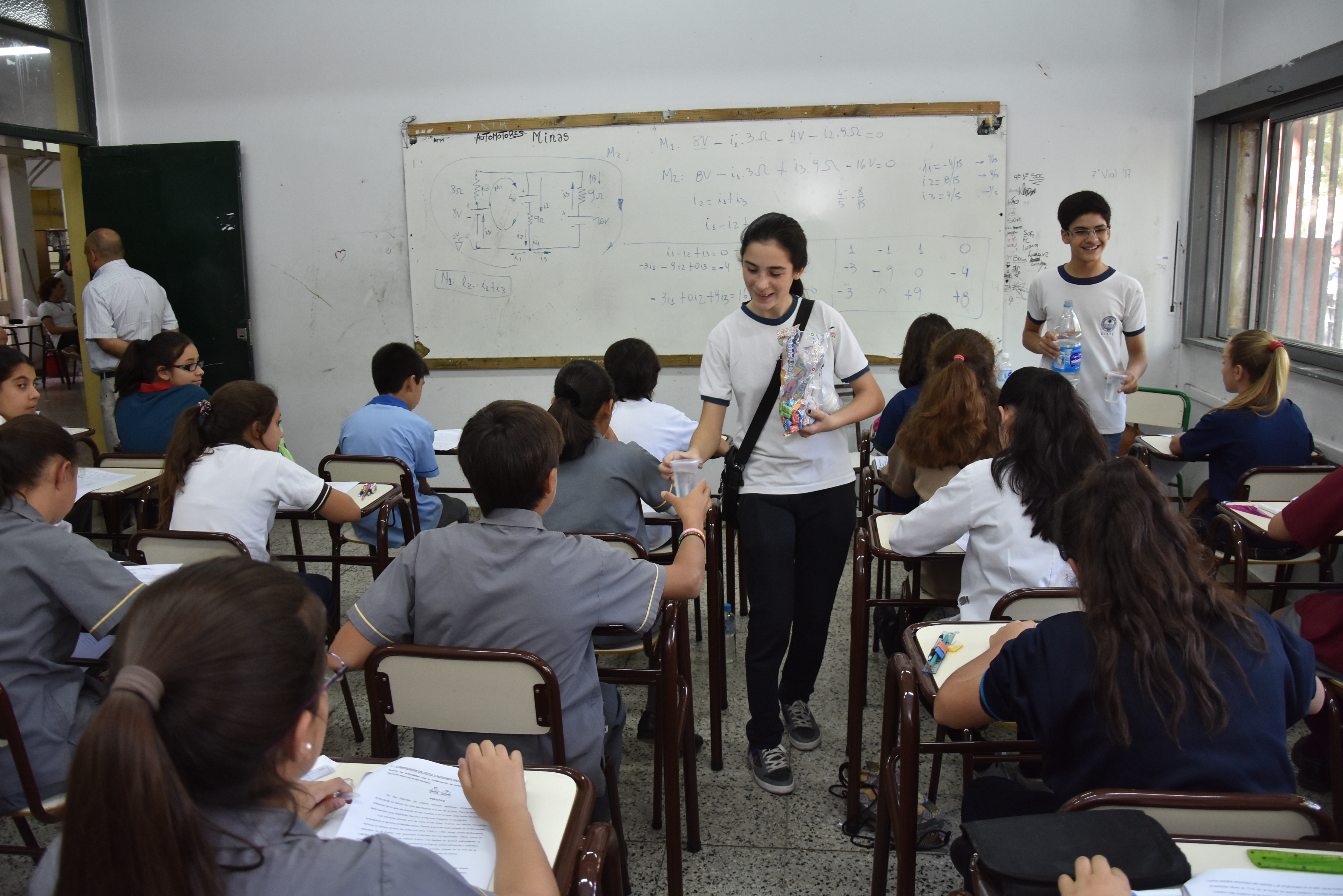 Con la ayuda de los alumnos del centro de estudiantes, las autoridades de la Escuela Industrial atendieron a los chicos con agua y caramelos, mientras rendían. Dijeron que este gesto es para que los niños se sientan contenidos y para que no se descompongan mientras están en el examen.