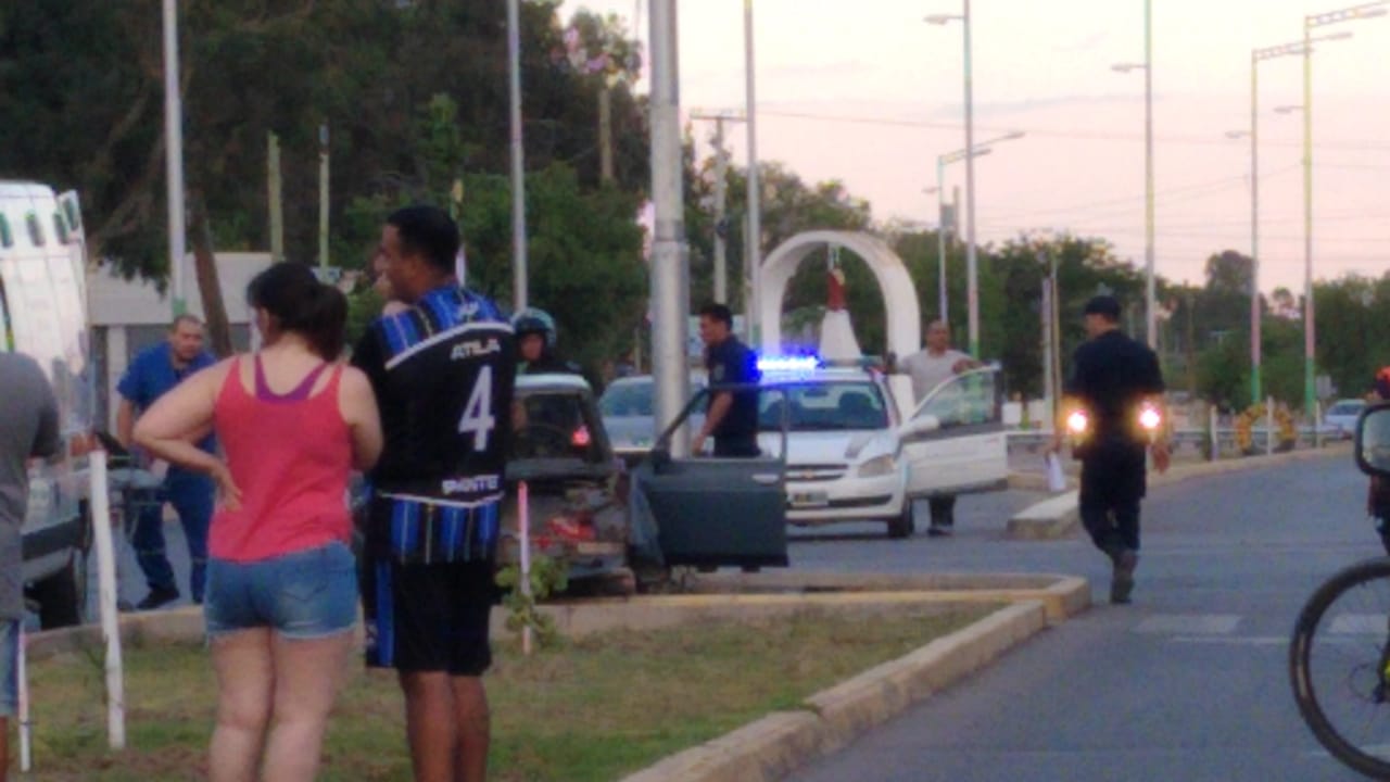 Según fuentes policiales, se investigan las causas por los que un viejo Fiat 128 fue a parar a ese lugar, saltando uno de los cordones y arrugando su trompa con el cordón interno.