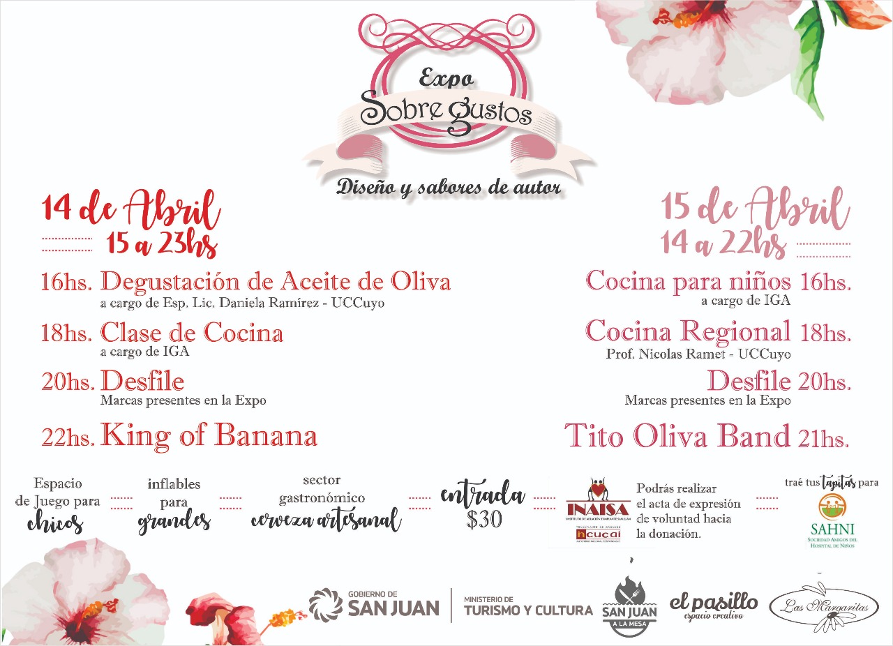 En una nueva edición de la Expo sobre Gustos, “Las Margaritas” y “El Pasillo, espacio creativo”, con el apoyo del Gobierno de la Provincia, nos traen dos días para deleitarse y entretenerse en un evento donde la gastronomía, el buen gusto de los diseñadores, artesanos, pasteleros y chefs serán protagonistas.