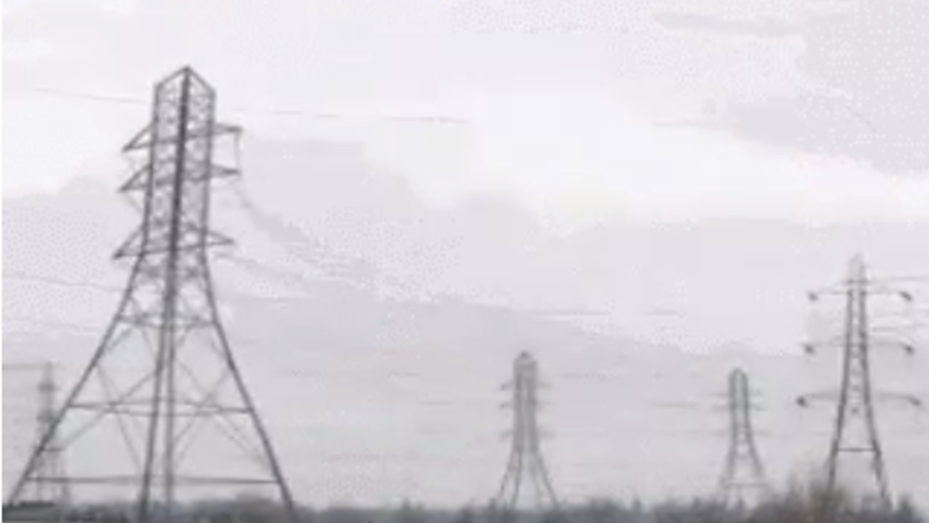 Se trata de una animación GIF en la que aparecen tres torres de tendido eléctrico y una de ellas salta por encima de un cable.